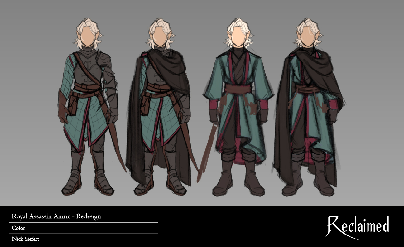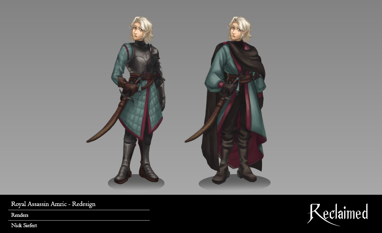 Amric is Alaric's, the king of Alohnsohn, personal assassin. He's incredibly conflicted about his position as an assassin, and part of him wishes to return to his home in the heart of a deep, continental forest. This is made difficult due to his growing affection for his king. I designed him for my homebrew D&D setting called Reclaimed.